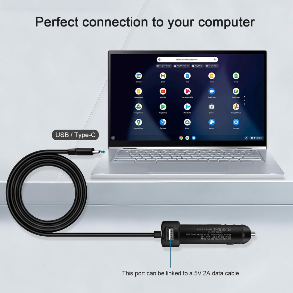65W USB-C DC Travel Adapter car Charger for Dell Laptops